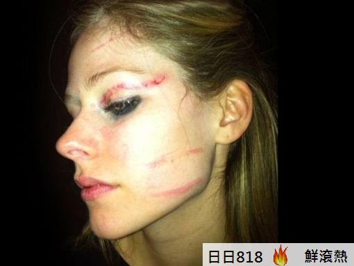 受傷的艾薇兒滿臉抓痕,樣子頗嚇人。(圖/翻攝網路)